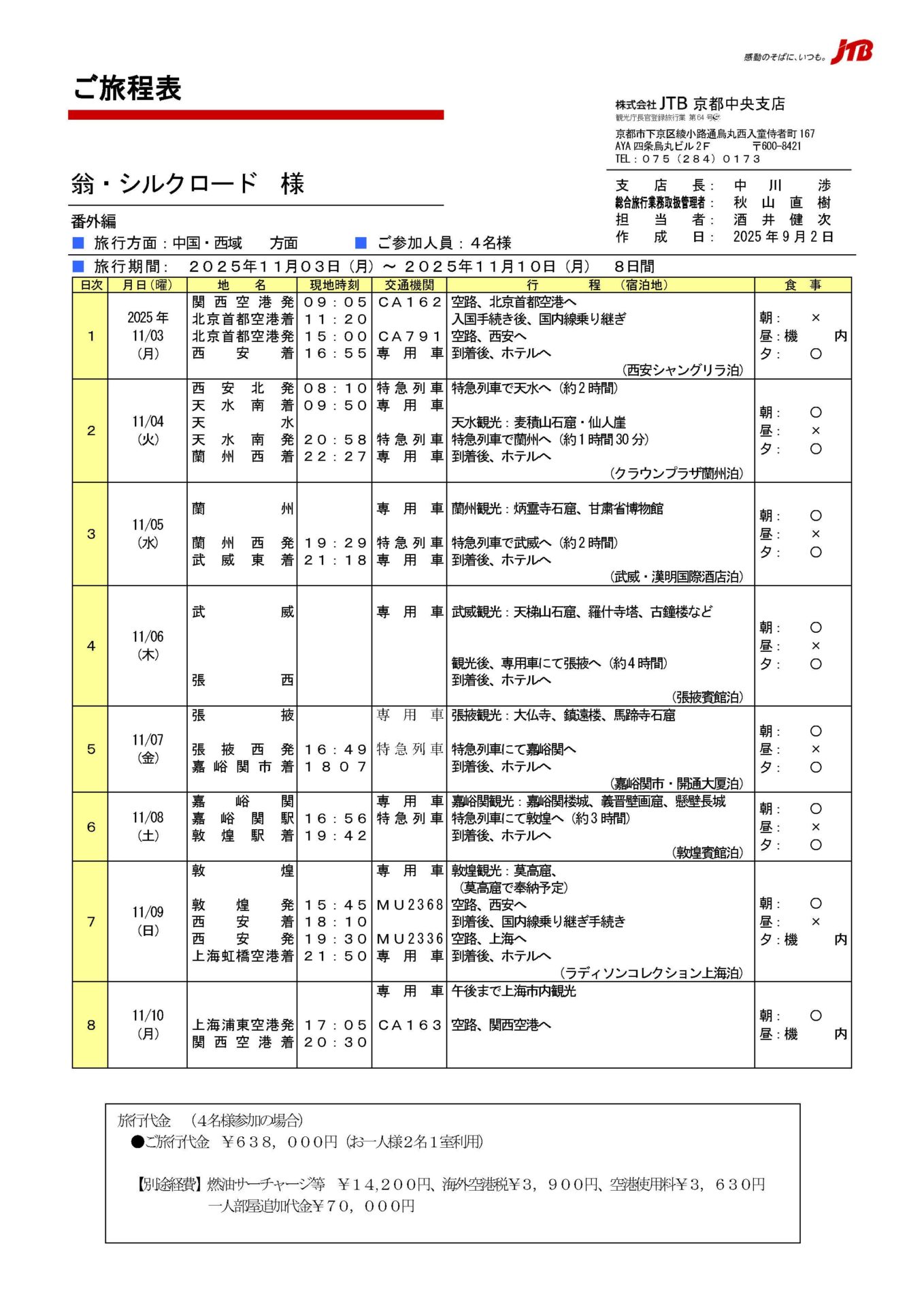 西安、天水、蘭州、武威、張掖、嘉峪関、敦煌