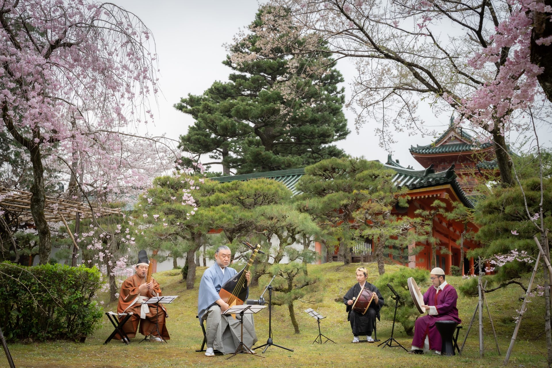 琵琶 友吉鶴心|篳篥 稲葉明徳||太鼓 永田充・黒坂周吾